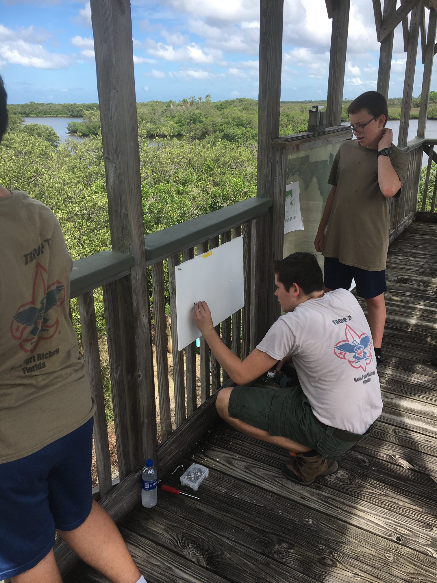 Noah Ealy's Eagle Project was to plan and install Educational signage at the Energy Marine Center (EMC). These signs will allow the thousands of students who visit the EMC every year to easily and quickly be able to identify the wild life they see.